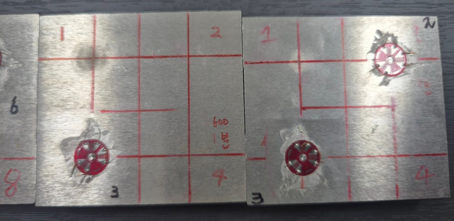 🔸 홀 드릴링 후 시편 상태 (잔류응력 측정 후 홀 편심, 오차에 대한 보정 진행)