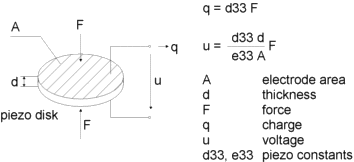 디스크에 수직으로 가해지는 힘은 전하를 생성하고 전극에 전압을 발생시킵니다.