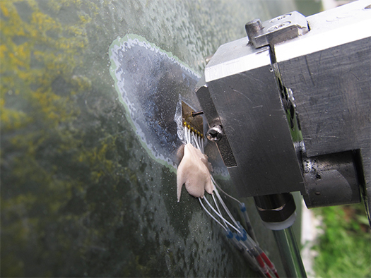 아래는 SINT사에서 진행한 대형 파이프 구조물의 현장 잔류응력측정 사진입니다.