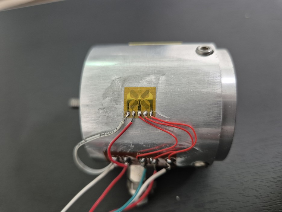 실제 축에 부착한 풀브릿지 토크 측정용 스트레인 게이지