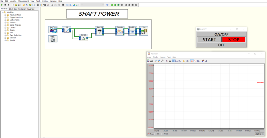 계측 프로그램인 DASYLab으로 실제 프로그램 구성한 화면입니다.
