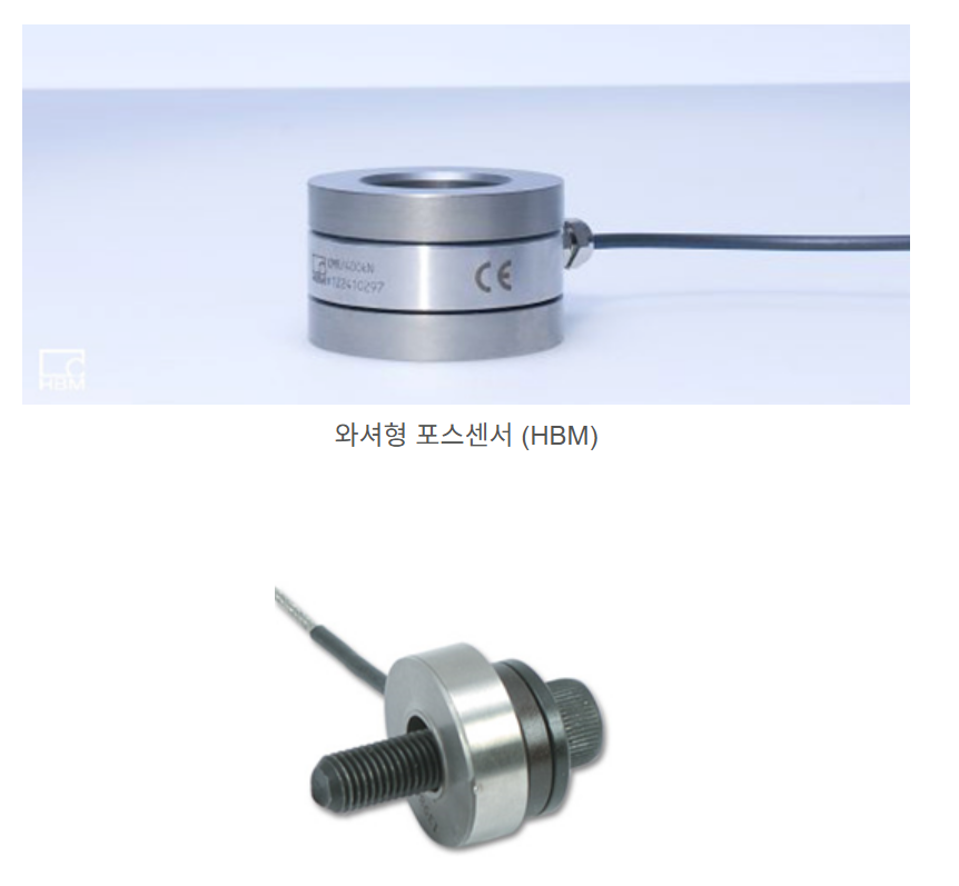 축력 측정의 경우 볼트 자체를 센서로 제작하거나 축력 측정용 와셔형 포스 센서를 사용하는 것입니다.