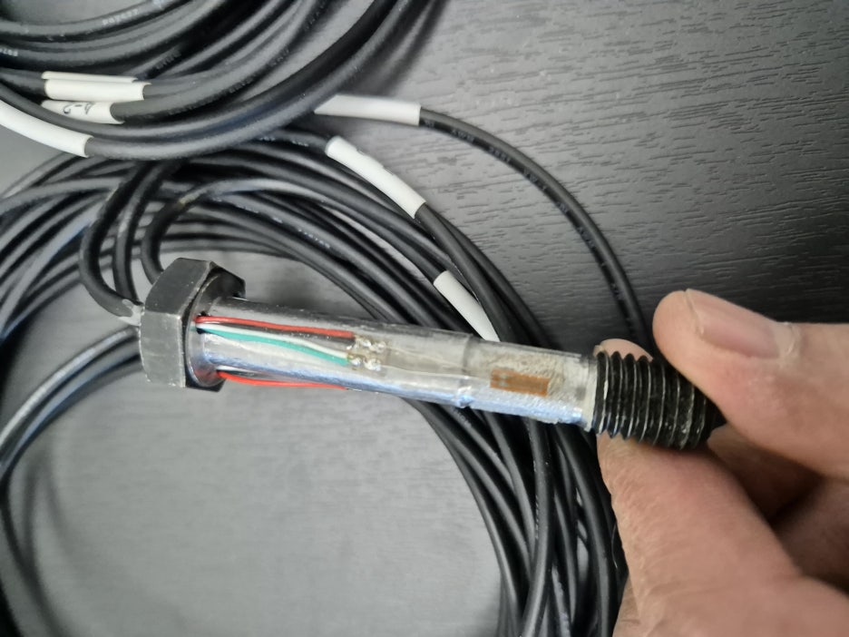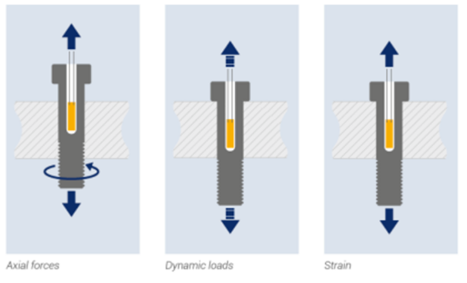 M8 이하의 적은 사이즈의 볼트에 적용이 되며, 볼트에 홀 가공 후 전용 스트레인게이지를 삽입, 전용 2액형 본드, 경화제를 이용하여 경화 시킨 후 진공작업, 고온으로 완전 경화 시키는 작업으로 제작이 됩니다.