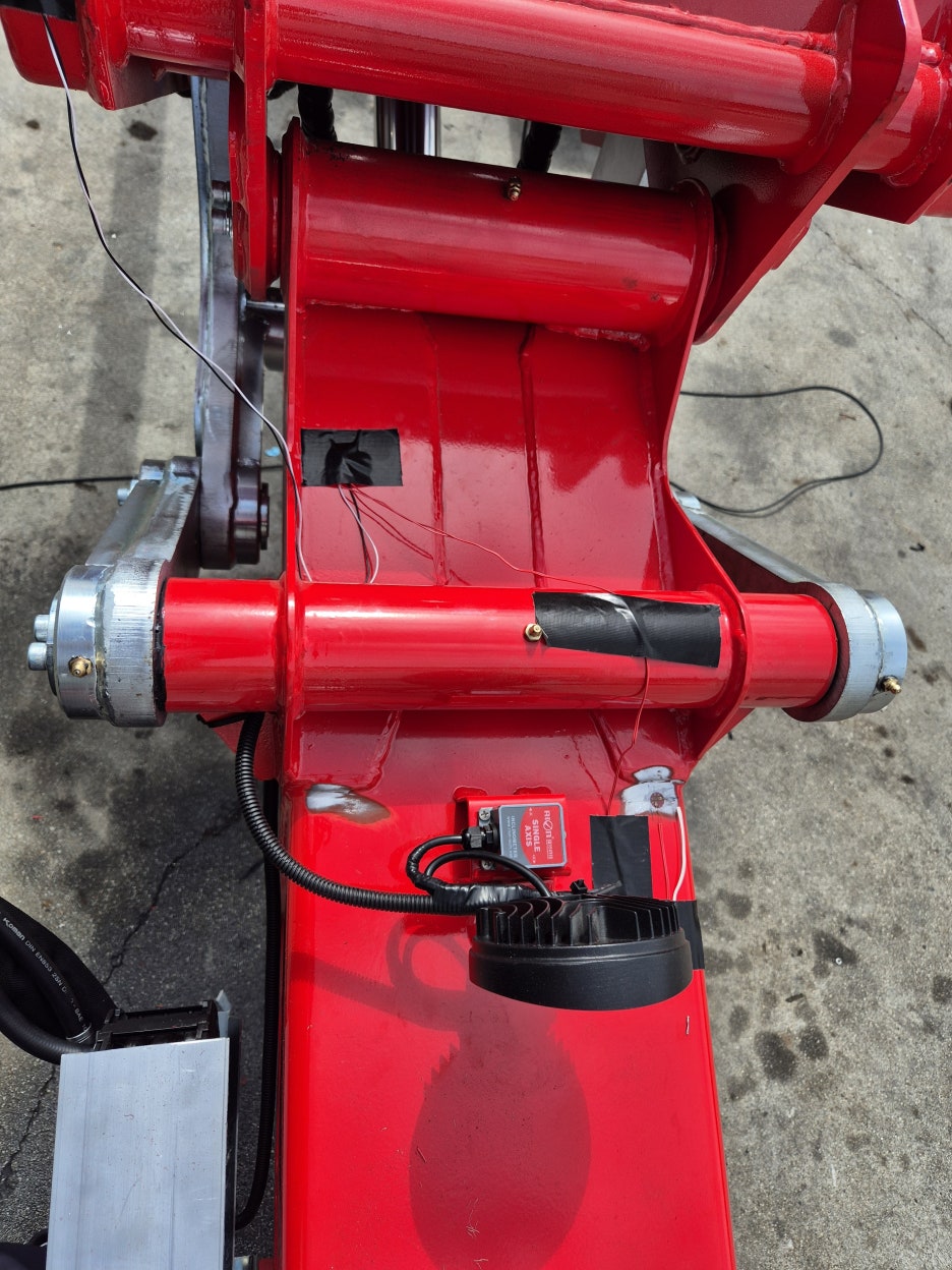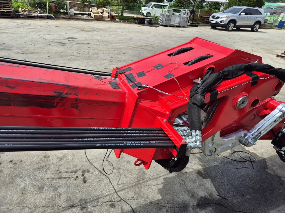 응력이 많이 걸리는 포인트에 스트레인게이지를 부착하여 붐대의 여러 각도별 구동 응력을 측정, 평가 하였습니다.